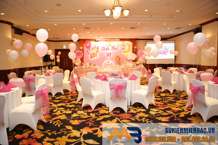 Bé Anh Thư – nhân vật chính của bữa tiệc là một bé gái vô cùng xinh xắn, đáng yêu nên team đã xây dựng ý tưởng trang trí bữa tiệc sinh nhật theo concept công chúa và lấy gam màu hồng phấn làm chủ đạo. Từ backdrop sân khấu, tiểu cảnh và đặc biệt là bàn Galaxy đều được mỗi thành viên chăm chút cẩn thận, tỉ mỉ đến từng chi tiết.